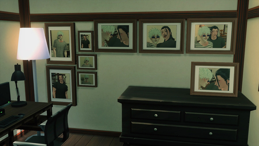 この写真は壁に飾ったり、オブジェクトの上に置けたりします。フレームの色等も変えられます。