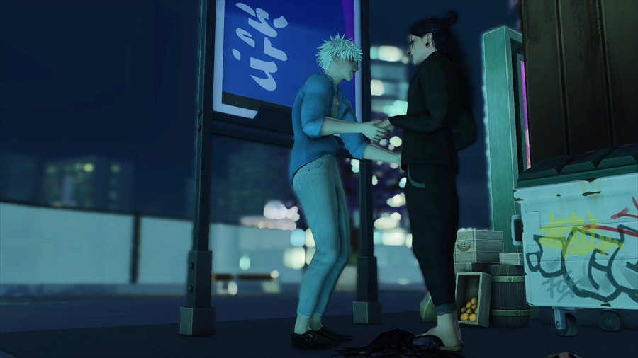 ゴミが見えないので何してんですか?って感じではあるのですが、これは肩についているゴミを取ってあげているというモーションです。