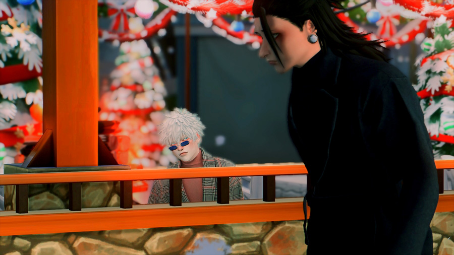 折角のクリスマス(イヴ)なので悟と傑にお借りしたクリスマスマーケット区画に行ってもらったり、あと丁度休暇で旅館にいたのでそこをクリスマス風に飾り付けたりしてクリスマス感を味わってみました。