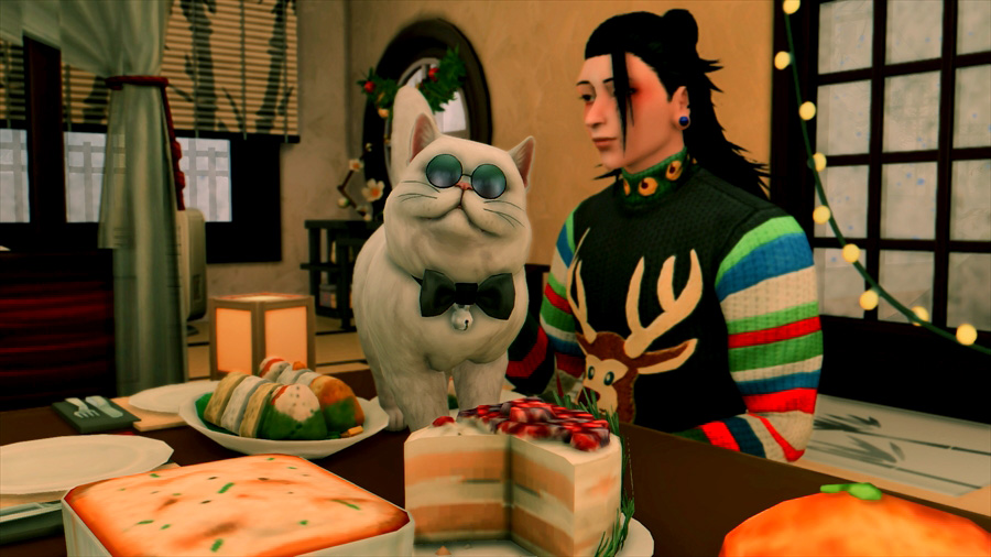 もう盗み食いというか堂々人間の目の前でケーキを食べたりチキンを食べたりパイを食べたりやりたい放題のサトル。クリスマスだからいいか…と放置。