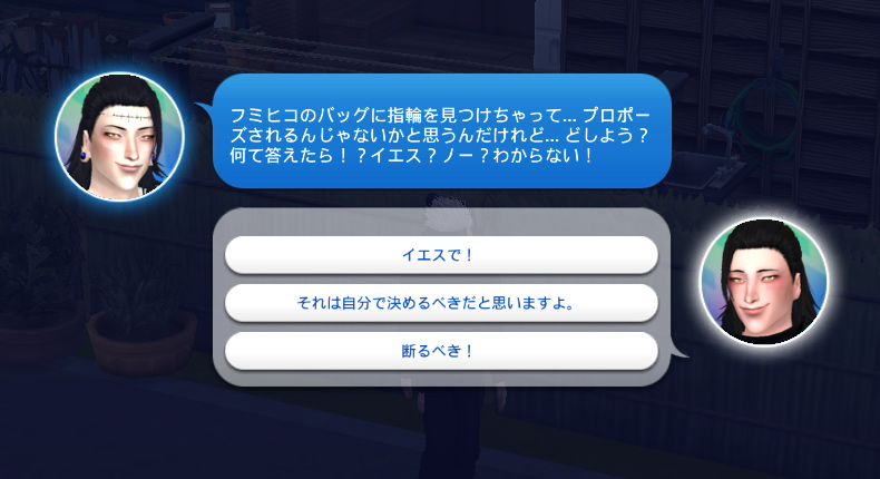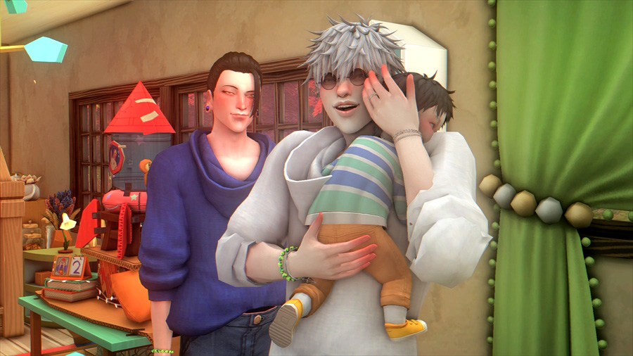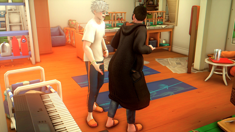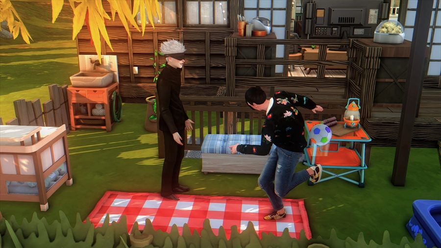 五夏宅は基本的に食事と作物の世話は傑担当なものの悟もふつうに料理スキル10なので傑が忙しい時は悟が作り、育児は気付いた方がという感じで操作する私は見守っているのですが子供の世話については放っておくと過保護すぎるレベルで世話をしてしまうので時々今は子供見てなくても大丈夫だよと指示をして別の行動をとってもらっています。