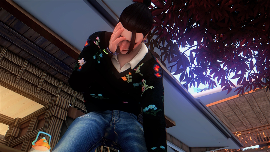 こっちの角度から見ると見て…る?となるのですが傑の行動が息子の様子を見るとなっていたので目線が合ってないもののゲーム内では「見ている」状態。